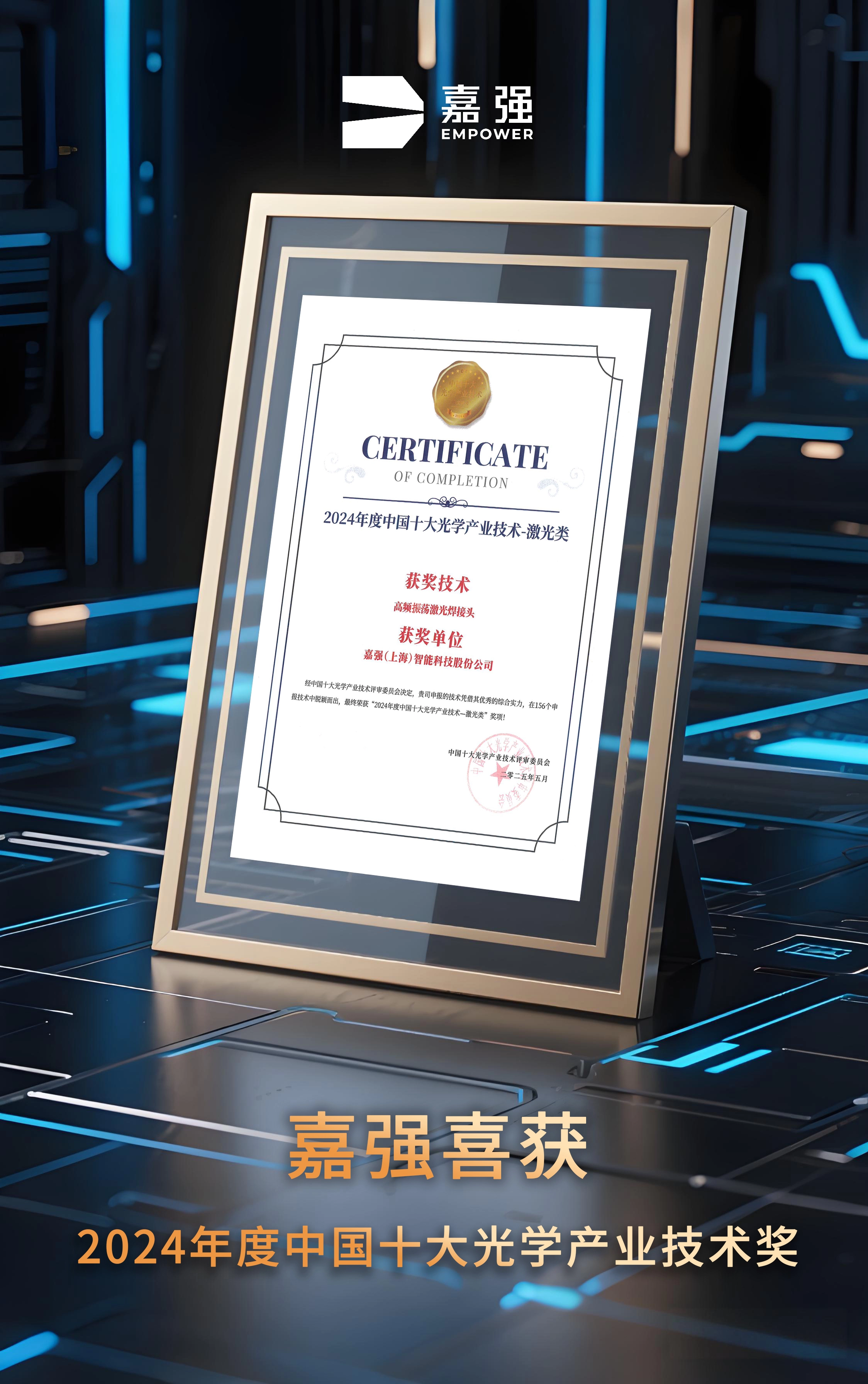 嘉強獲得“中(zhong)國(guo)十大(da)光學(xué)産(chan)業技(ji)術(shù)獎”,标志(zhì)着其在(zai)新(xin)産(chan)品(pin)研髮(fa)取得突破進(jin)展(zhan),獲得了(le)行業權威認可(kě)。此次獲獎既昰(shi)裏程(cheng)碑,也(ye)昰(shi)新(xin)起點。未來嘉強仍将以(yi)技(ji)術(shù)爲(wei)根基,不斷(duan)增強創新(xin)能(néng)力(li),爲(wei)推動(dòng)激光智能(néng)製(zhi)造(zao)産(chan)業的(de)髮(fa)展(zhan)貢獻力(li)量。